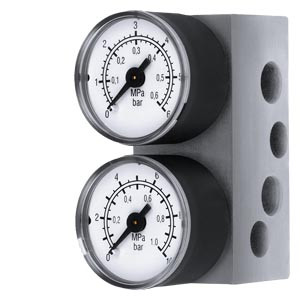 MANOMETER MANIFOLD FOR SIPART PS2 ELECTROPNEUMATIC POSITIONER 6DR40**-1*, SINGLE ACTION, SIMPLE TO RETROFIT 1 NETWORK PRESSURE MANOM: 10BAR 1 CHAMBER PRESSURE MANOM: 6BAR