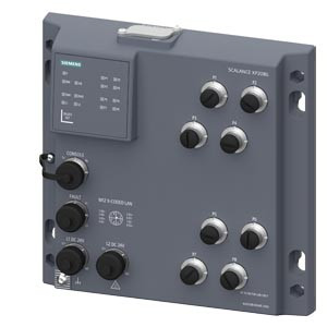 SCALANCE XP208G, IP65, managed layer 2 IE switch, 8x 100/1000 Mbps, M12 ports, LED diagnostics, error signaling contact, redundant power supply, IEC 62443-4-2 certified PROFINET IO device, network management, can be operated in redundant ring, dust caps, -40 °C to +70 °C, C-PLUG optional.